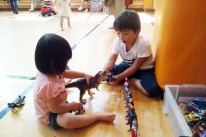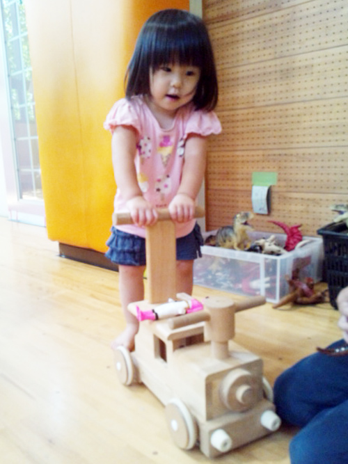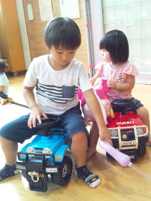 | 爺ちゃんと児童館に行くの「イヤダー」って叫んだの。 |