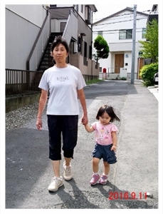 婆ちゃんと一緒に帰ってきたの。ハルちゃんは歩くの大好きよ。
