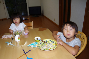 | 16.9.11 ハルちゃんは卵焼きが大好きだよ。朝ごはんを食べて爺ちゃんと遊んだんだ。それから近所の児童館に行って2人で沢山遊んだよ。ハルちゃんは歩くのが大好きなんだ。夕方に川崎へ帰ったら駅でパパが待っててくれたよ。 |