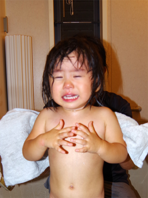 | ハルちゃんは暑いお風呂が嫌いだから泣いちゃったの。 |