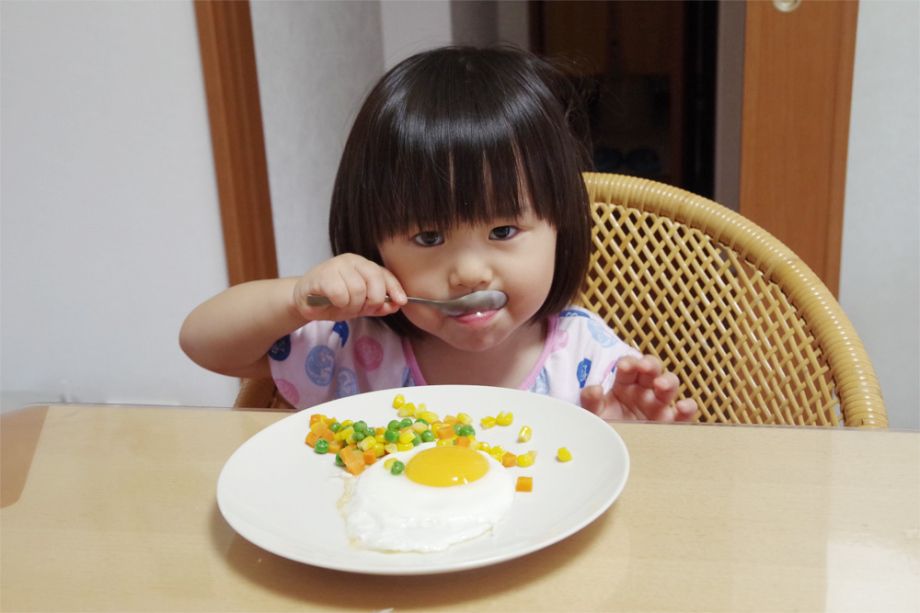 | 朝ご飯を食べたの。ハルちゃんは「卵焼き」が大好きよ。 |