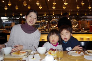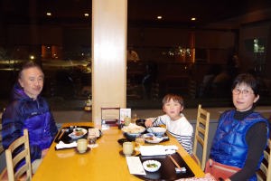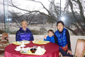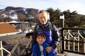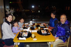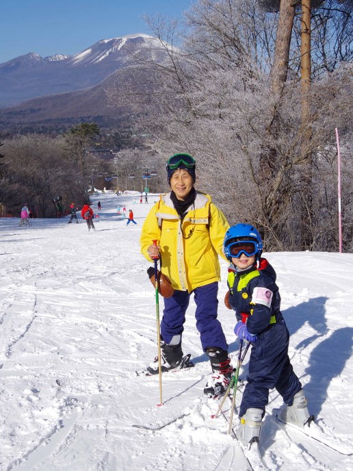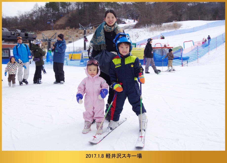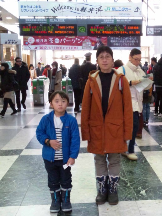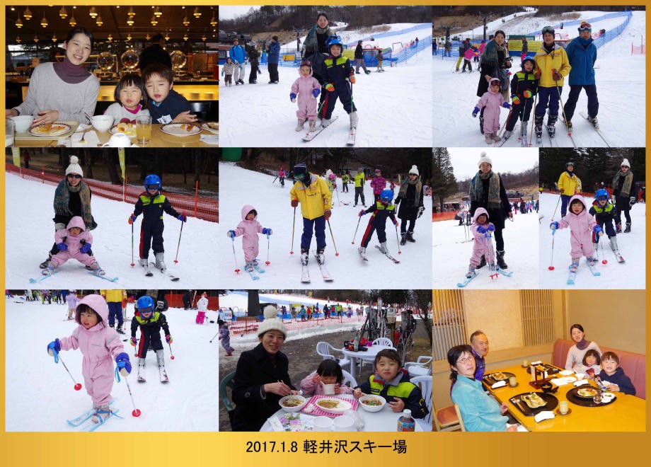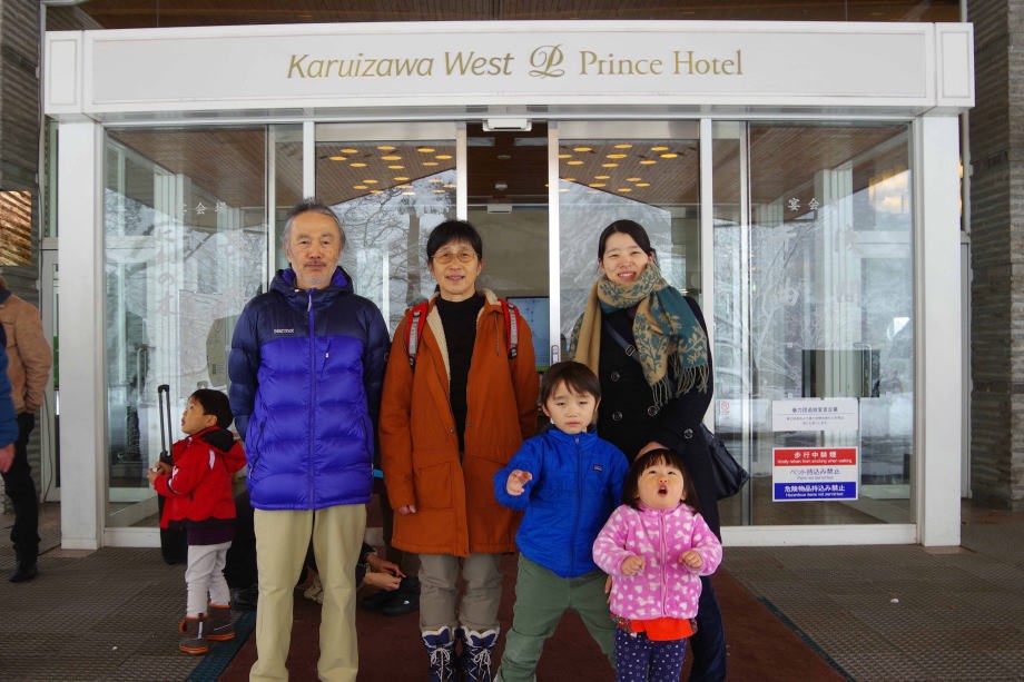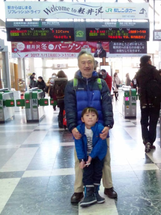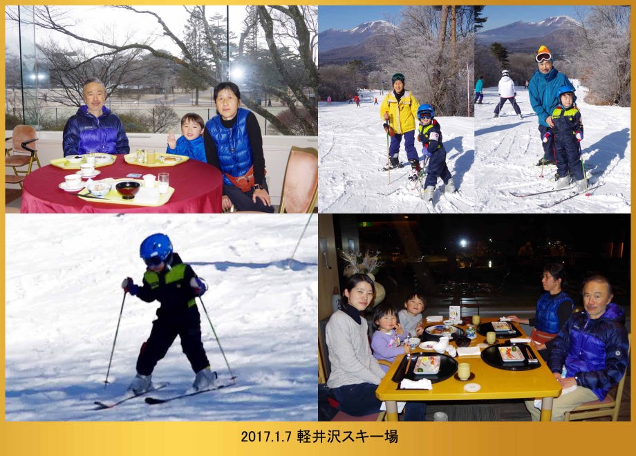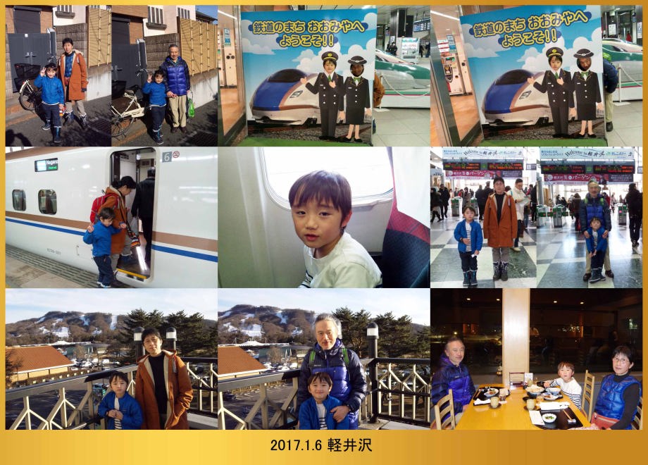 | 17.1.6 爺ちゃん婆ちゃんと一緒に新幹線に乗ったよ。軽井沢駅に着くとスキー場が見えたんだ。軽井沢プリンスホテルウエストに泊まって晩ご飯を食べたよ。 |