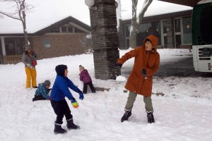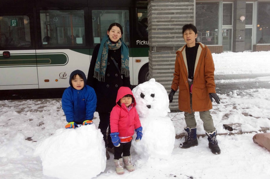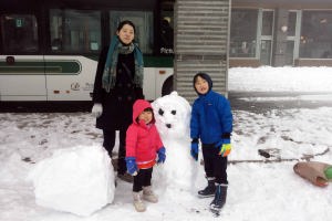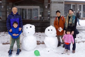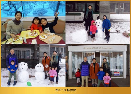 | 17.1.9 今朝は滑らないでホテルの前で雪だるまを作って遊んだよ。バスで軽井沢駅まで行って新幹線に乗っておうちに帰ったんだ。 |