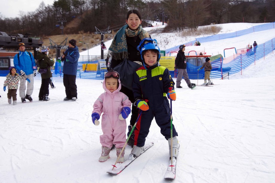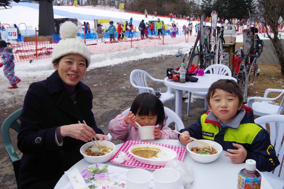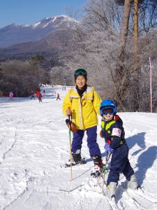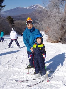 | 17.1.7 朝ご飯を食べて一日中滑ったよ。浅間山がよく見えたんだ。午後にママが来てみんなで晩ご飯を食べたよ。 |