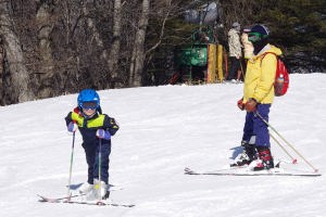 | 17.1.8 ママと朝ご飯を食べたよ。ハルちゃんもスキーを付けて滑ったんだ。ハルちゃんはお昼ご飯を食べてホテルに帰ったよ。僕は午後も滑って練習したんだ。みんなで晩ご飯を食べたよ。 |