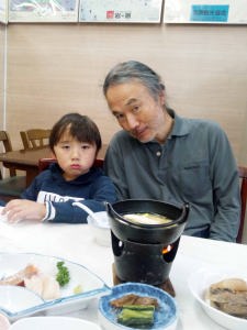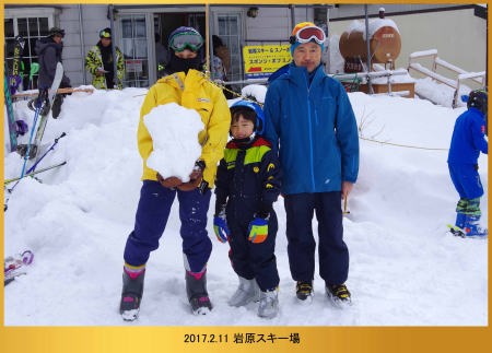 | 17.2.10〜12 爺ちゃん婆ちゃんと三人で新幹線に乗って岩原スキー場に行ったよ。スキー場の中にある小さな古いロッジ岩原に泊まったんだ。朝はお天気がよかったからリフトに乗って一番上から滑って降りて来たよ。お昼はお天気が悪かったけど調子良く滑れたんだ。午後は寒くなったからお風呂に入ってお部屋のこたつでご飯を食べて次の日に帰ったんだ。 |