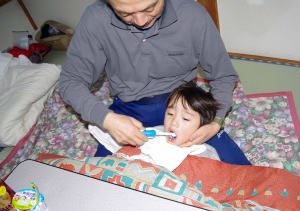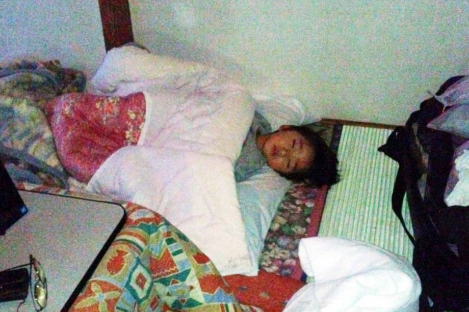 | 寝んねしたよ。ホテルじゃないから部屋も布団もボロなんだ。 |
