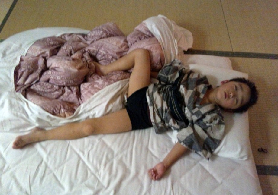 くたびれたからホテルの前の平らなコースを滑ったよ。 |
