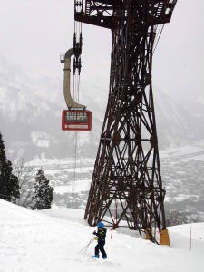| ゴンドラが上がって行ったよ。すごく急だから怖かったね。何時かゴンドラの下をスイスイ滑って降りるんだ。 |