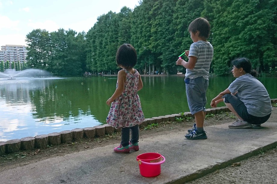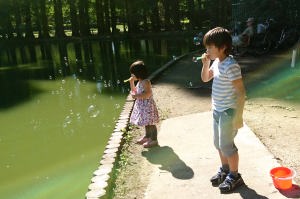 沼でシャボン玉をふいたの。