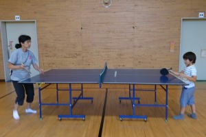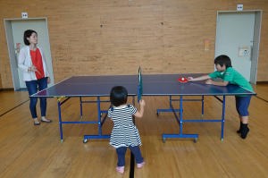 児童館で婆ちゃんとピンポンしたよ。