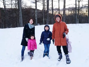 | 「プレジデント・リゾートホテル軽井沢」に着いて雪遊びしてるんだ。 |