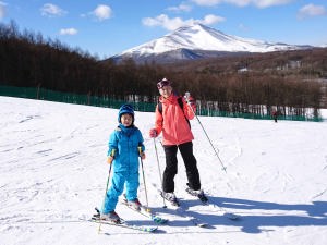 | 爺ちゃんに「スキーを習ってる」んだ。浅間山が綺麗に見えたよ。 |