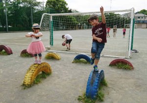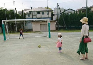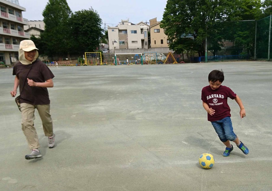 婆ちゃんとサッカーしたよ。