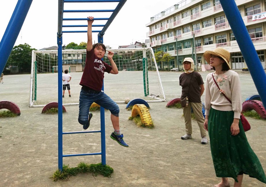 岸町小のジャングルジムで遊んだよ。