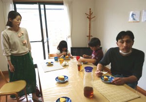 爺ちゃんちに戻ってバームクーヘンを食べたよ。
