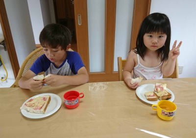 朝ごはんを食べてるの。