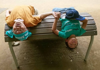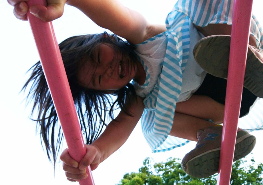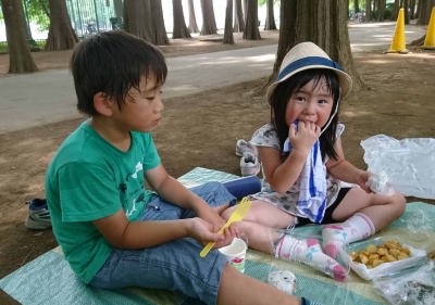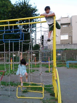 近所の小学校で遊んだの。
