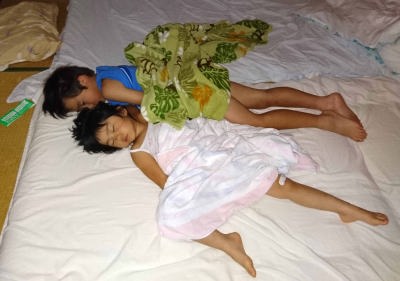 お風呂に入って寝んねしたよ。
