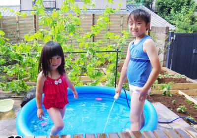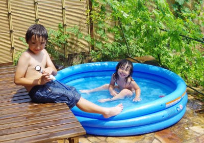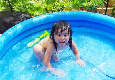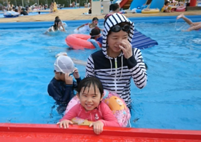 ファミリープールで遊んだよ。