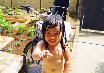 ぼくは水遊びが大好きだよ。