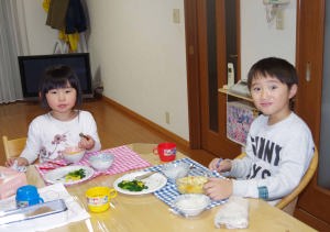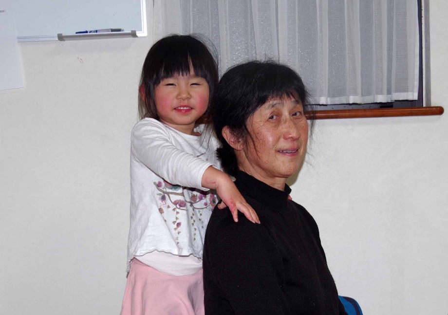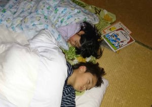 婆ちゃんに本を読んでもらって寝んねしたの。