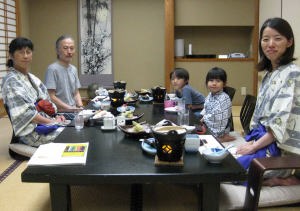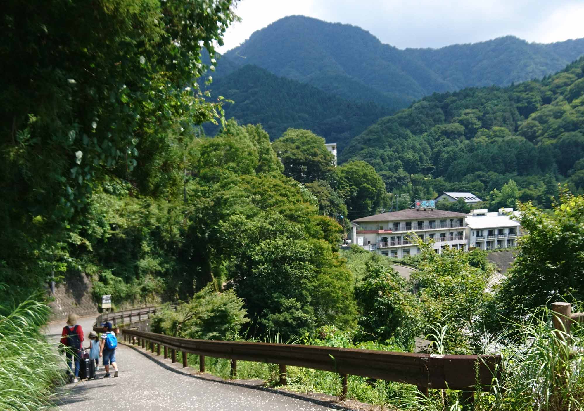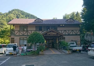 | バスを降りると信玄館が見えたよ。あそこに2泊するんだ。 |