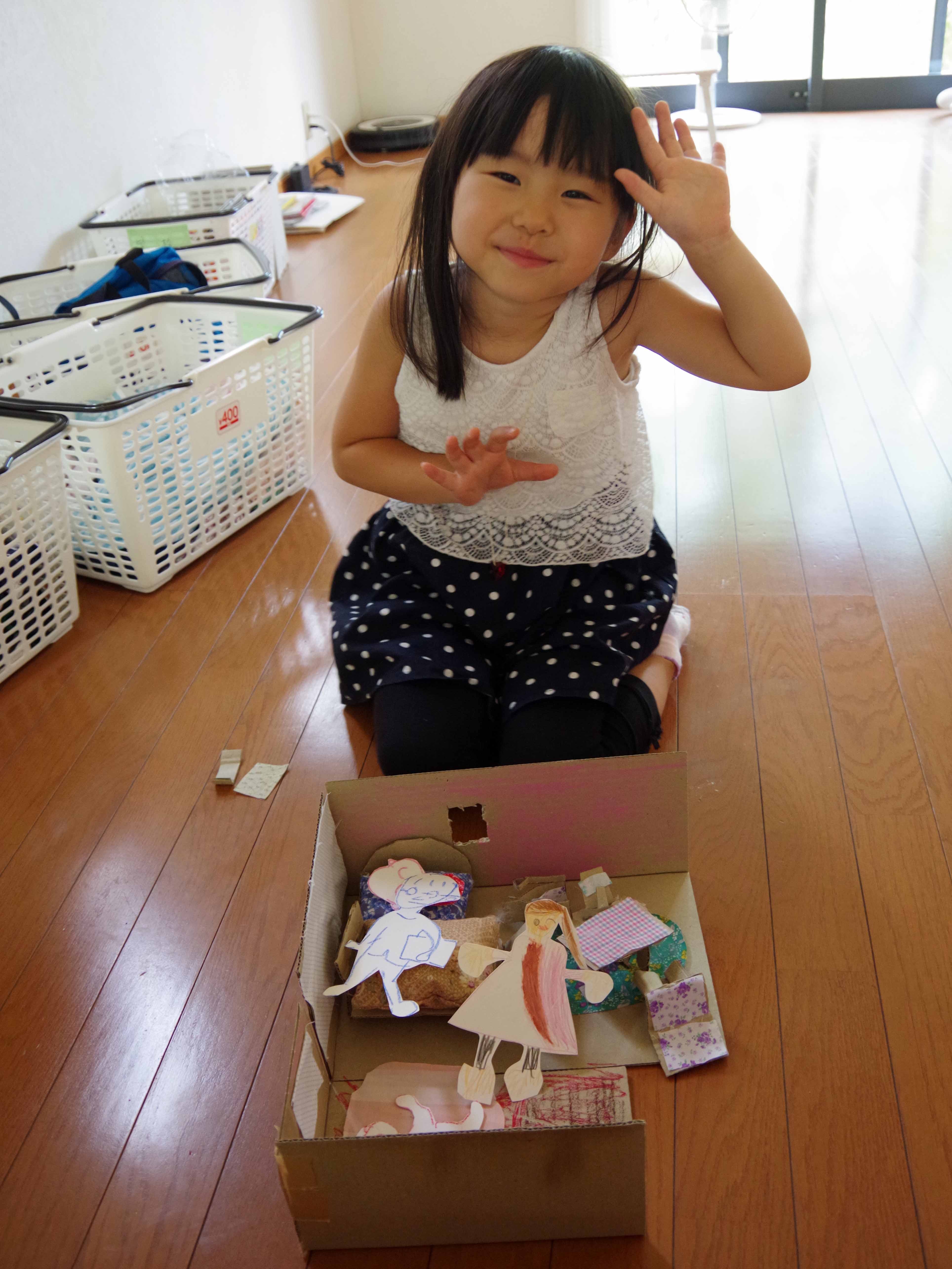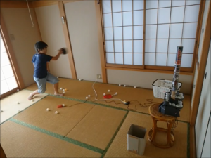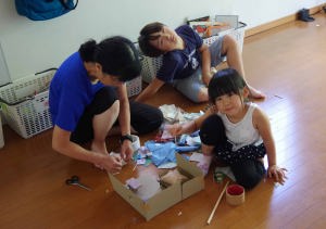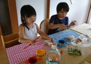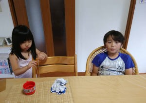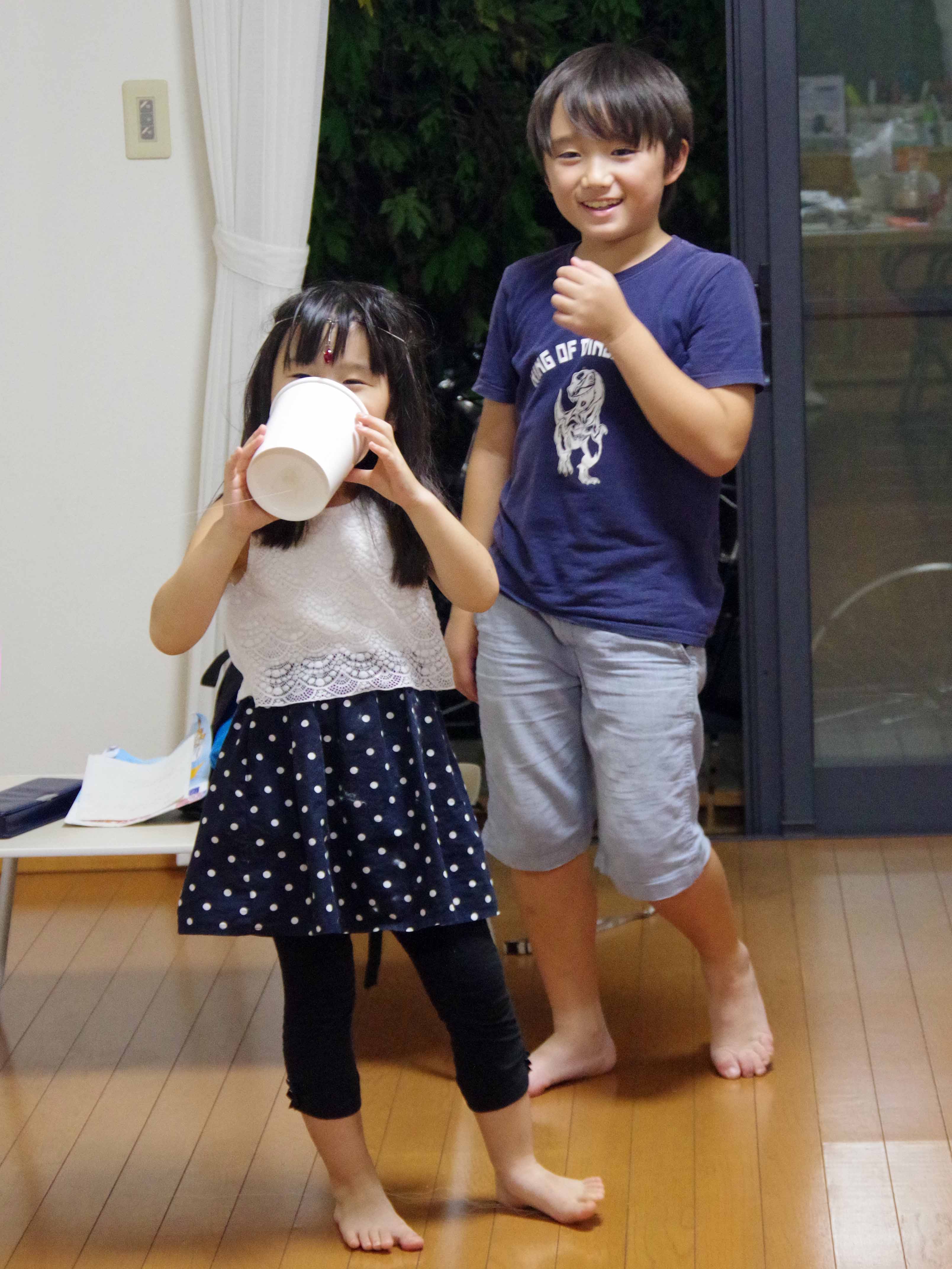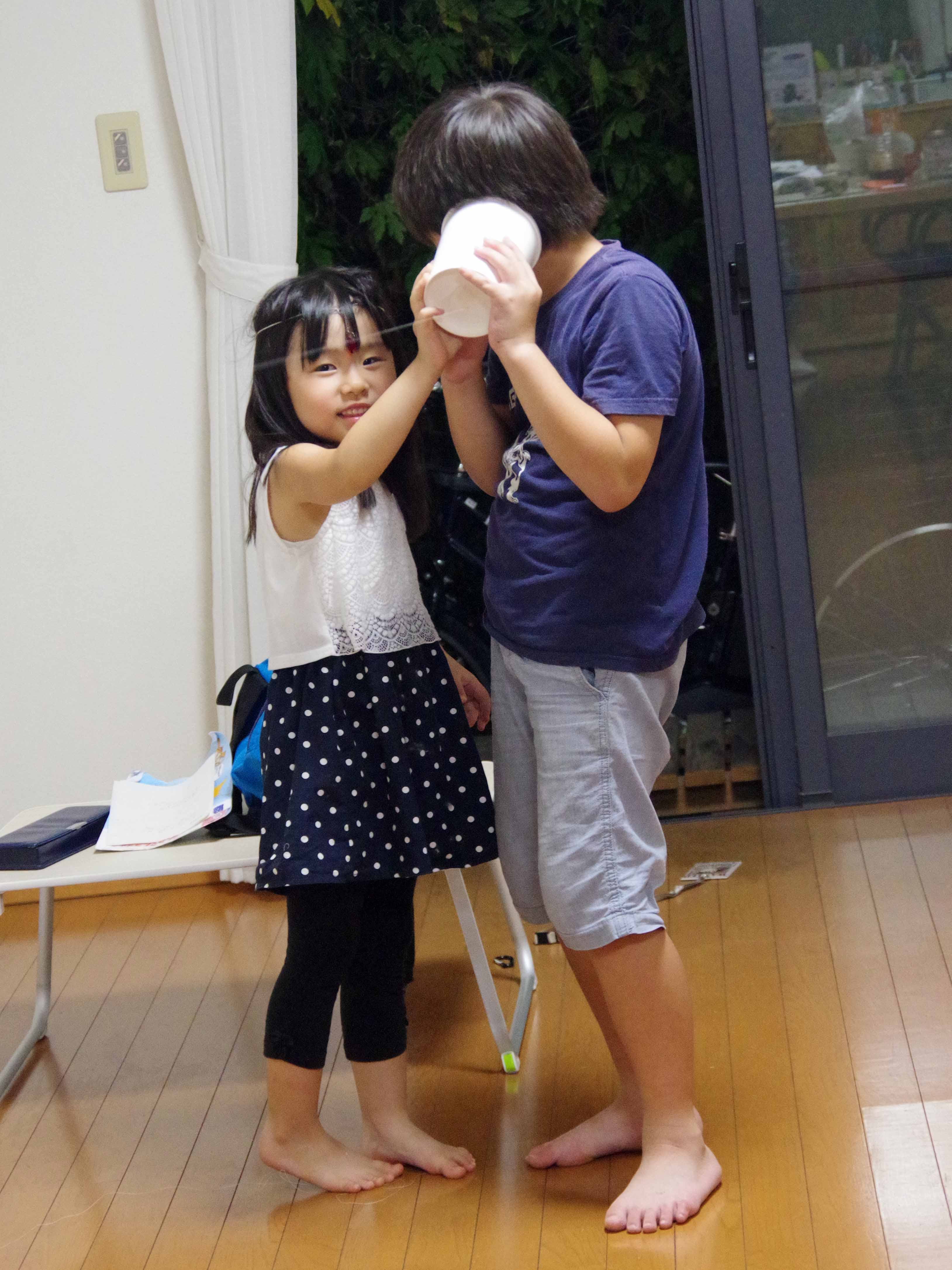 | 糸電話を作って遊んだよ。婆ちゃんの声が聞こえたよ。 |