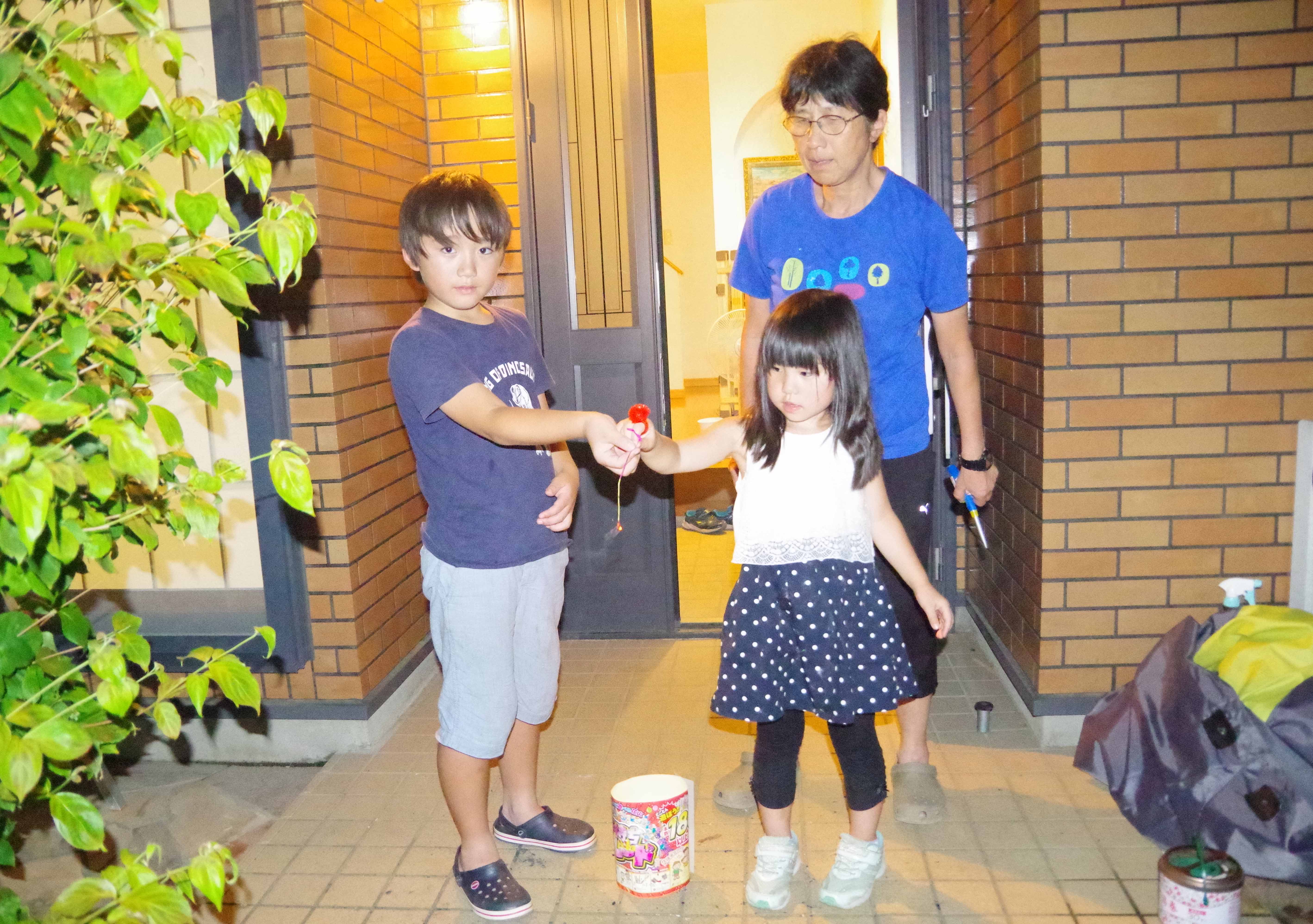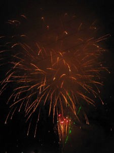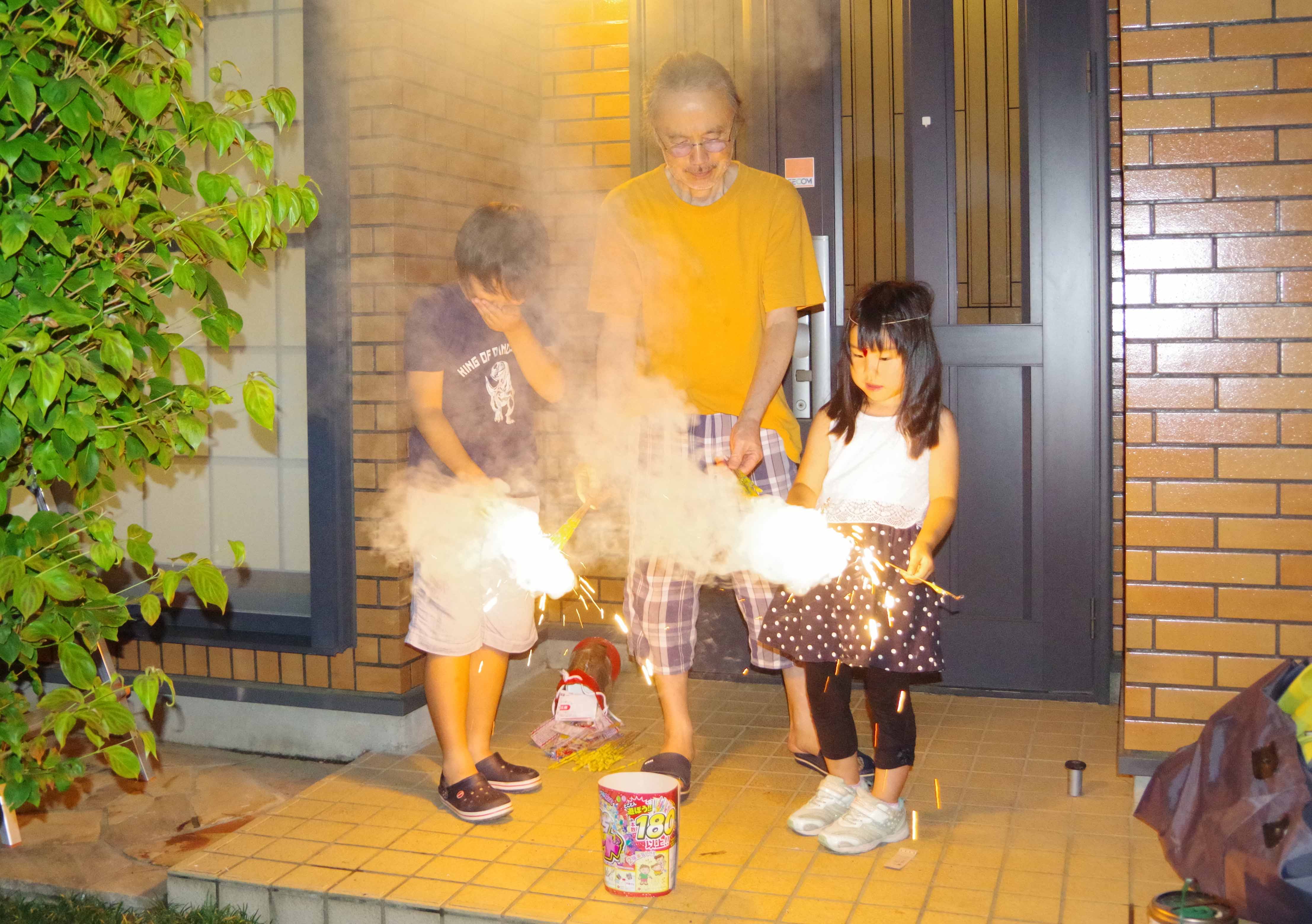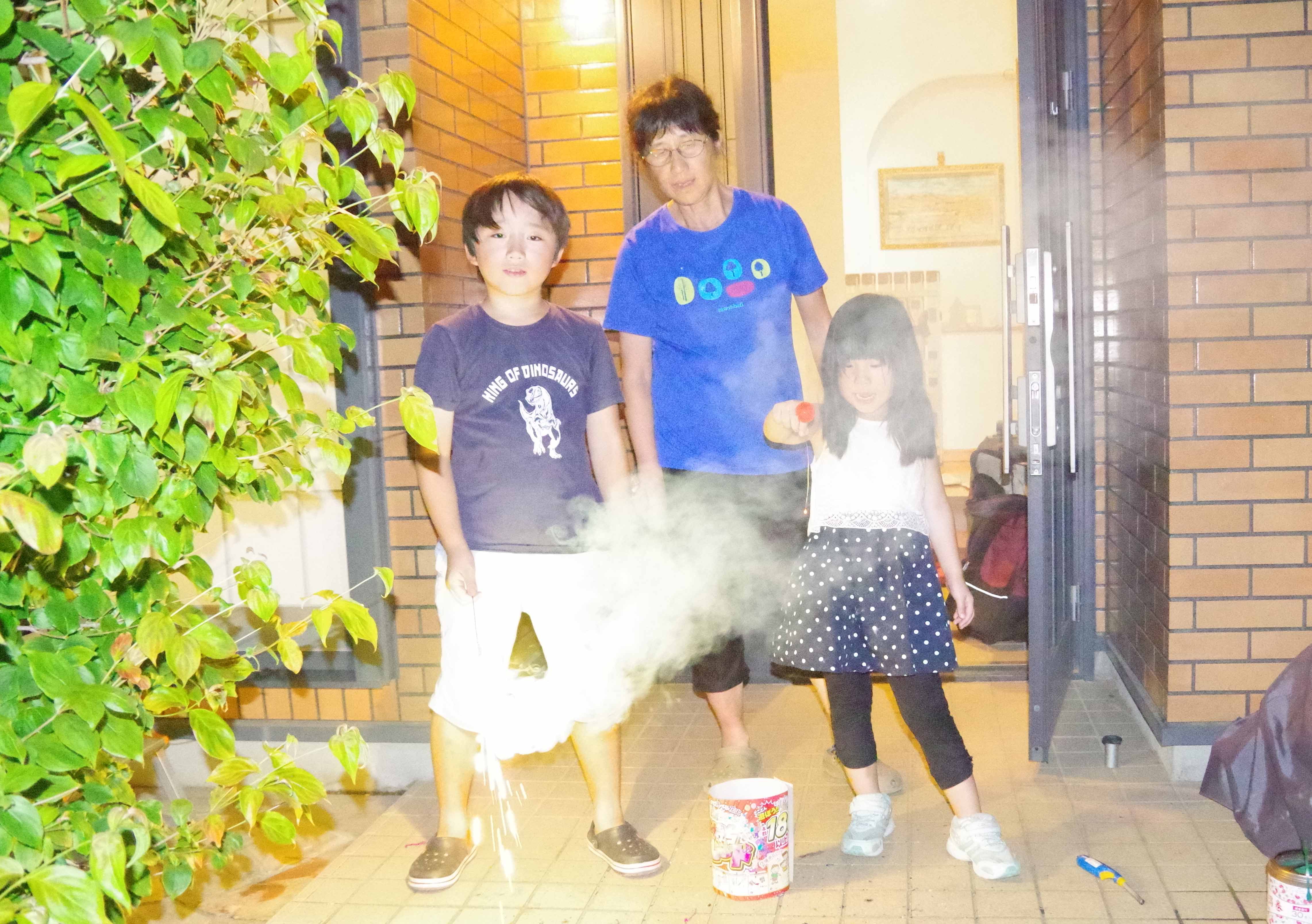 | 七時ごろバスに乗って丹沢湖花火大会を見に行ったの。 |