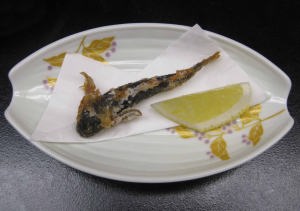 | 「かじか」の天ぷらだよ。二匹捕ったけど一匹逃がしちゃったんだ。 |