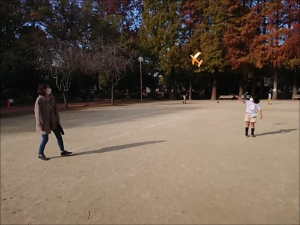 別所沼公園で婆ちゃんとバトミントンしたよ。