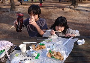 お昼に鳥のから揚げを持って別所沼公園に行ったの。