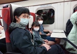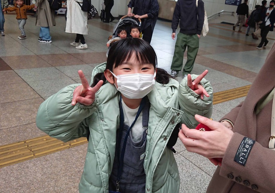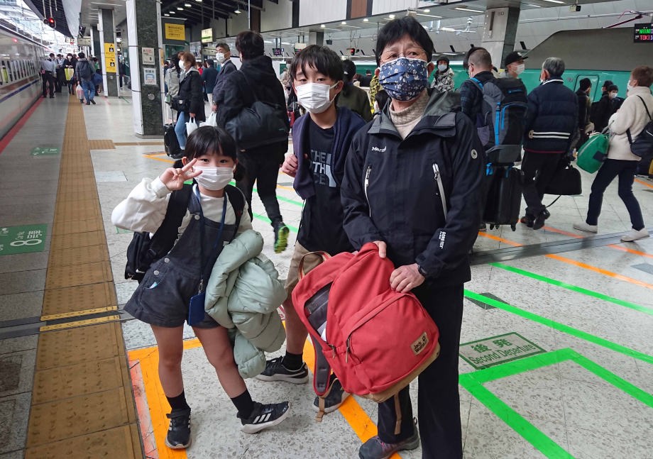 東京駅から新幹線に乗ったよ。今回は爺婆ちゃんと四人で行くの。