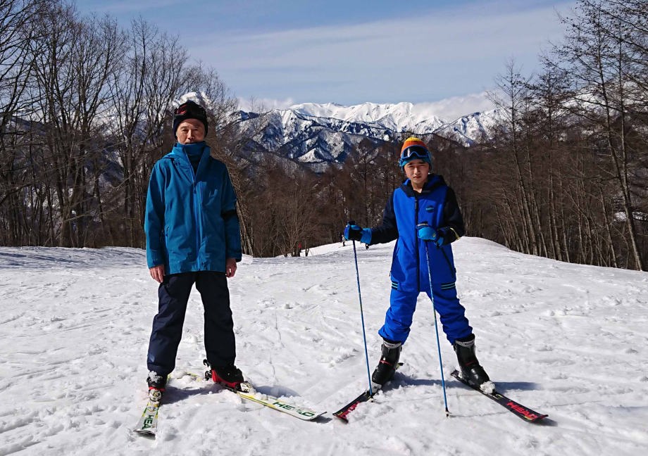 僕は爺ちゃんと山頂から滑ったんだ。