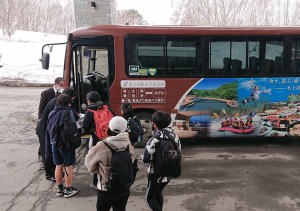 上毛高原駅で下りて、送迎バスに乗ったんだ。