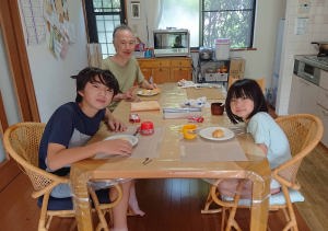 朝ご飯のパンを焼くの。