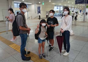 | 時間通り川崎駅に着いてパパが待ってたよ。爺ちゃん婆ちゃんバイバイ、又ね~。 |