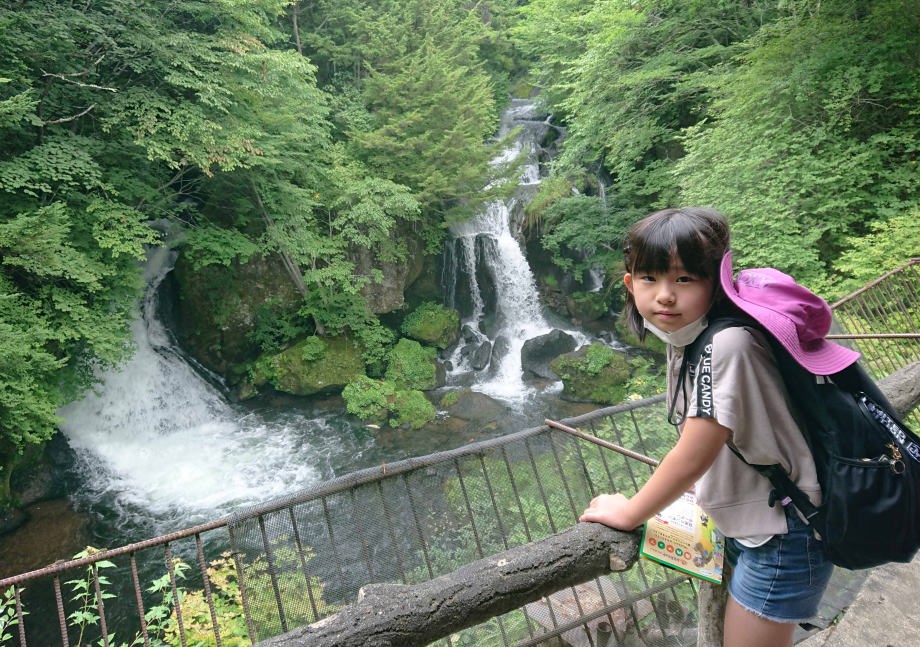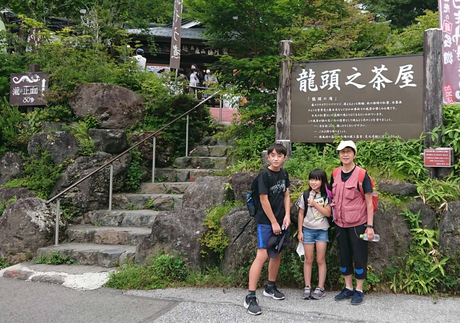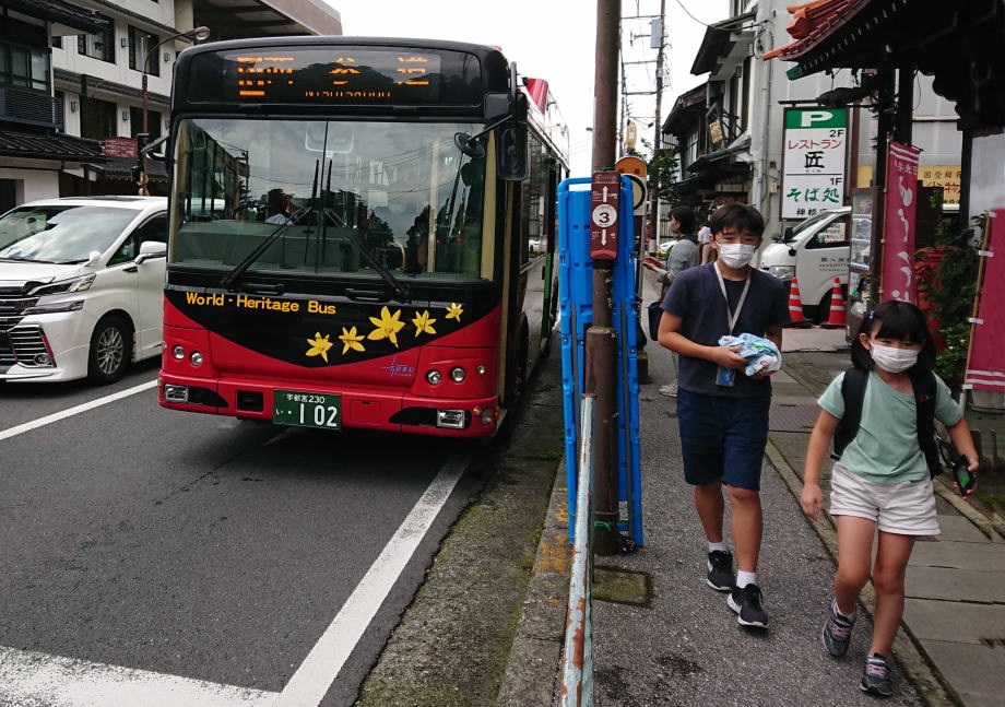 | これからバスに乗って「竜頭の滝(りゅうずのたき)」に行くの。 |