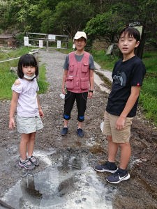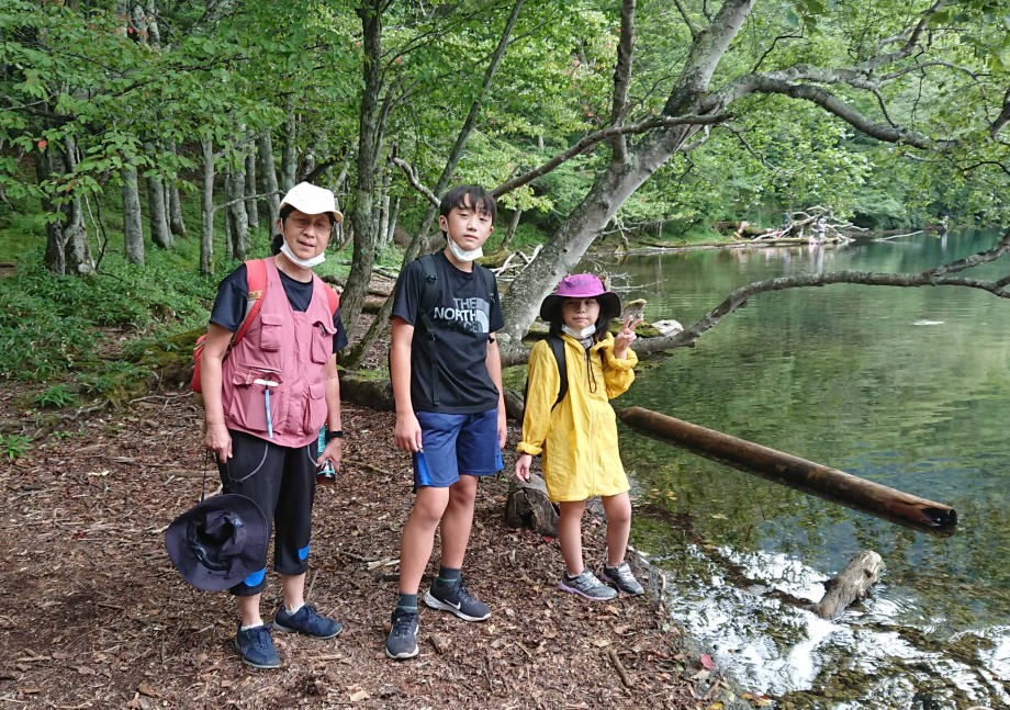 | 「湯の湖」に着いたよ。ハルちゃんは寒いからヤッケを着たの。 |