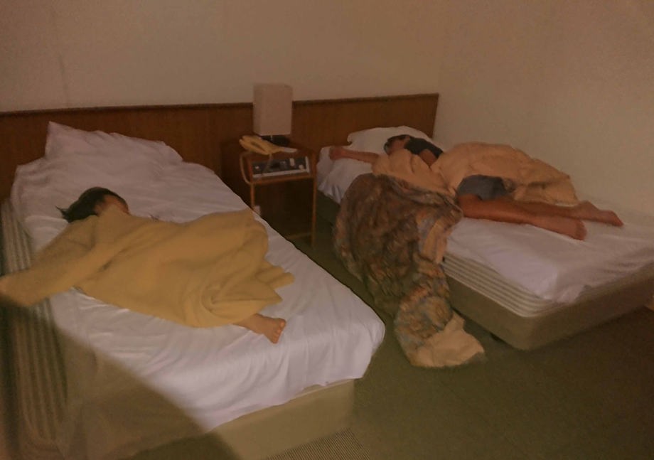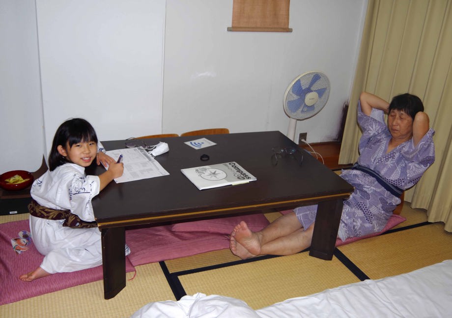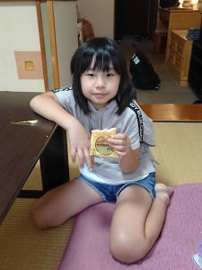 | お煎餅を食べたわ。このホテルは夏でも涼しくてクーラーが無いの。 |