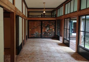 | 「白梅二鶏(はくばいにとり)」の襖(ふすま)だよ。 |