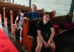 | 教会の近くで、お昼ご飯を食べたよ。沢山食べてたら電車に遅れそうになったんだ。 |