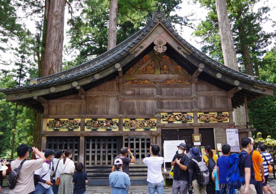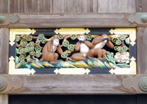 | 神厩舎の壁にある「見ざる・言わざる・聞かざる」の彫刻だよ。 |