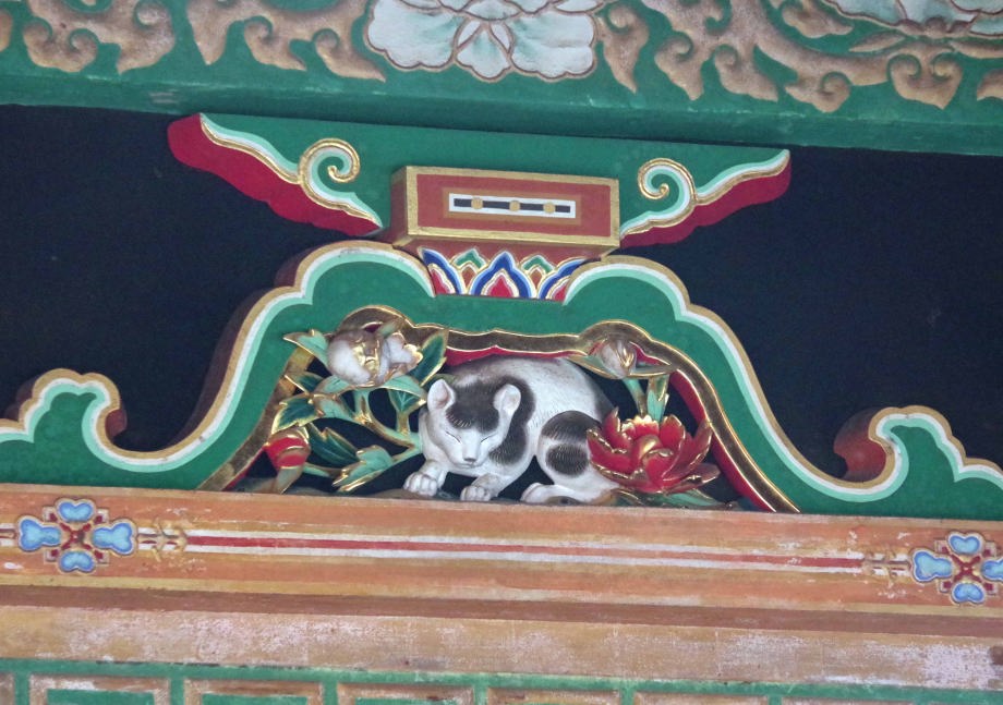 | 有名な「眠り猫」の彫刻は東廻廊(ひがしかいろう)にあるんだ。 |