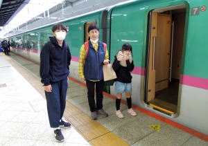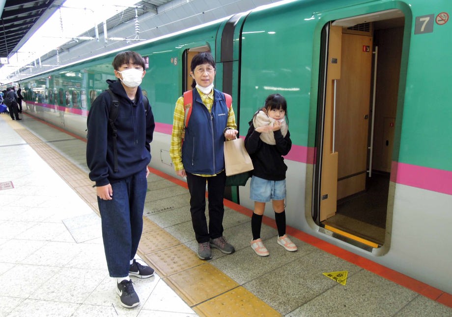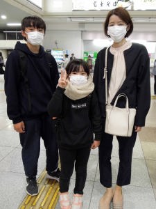 | 川崎駅に7時に着いたよ。ママが待っててくれたの。爺ちゃん婆ちゃんバイバイまたね~。 |