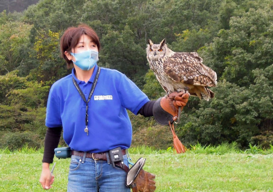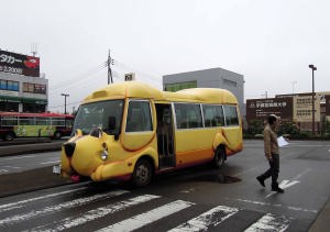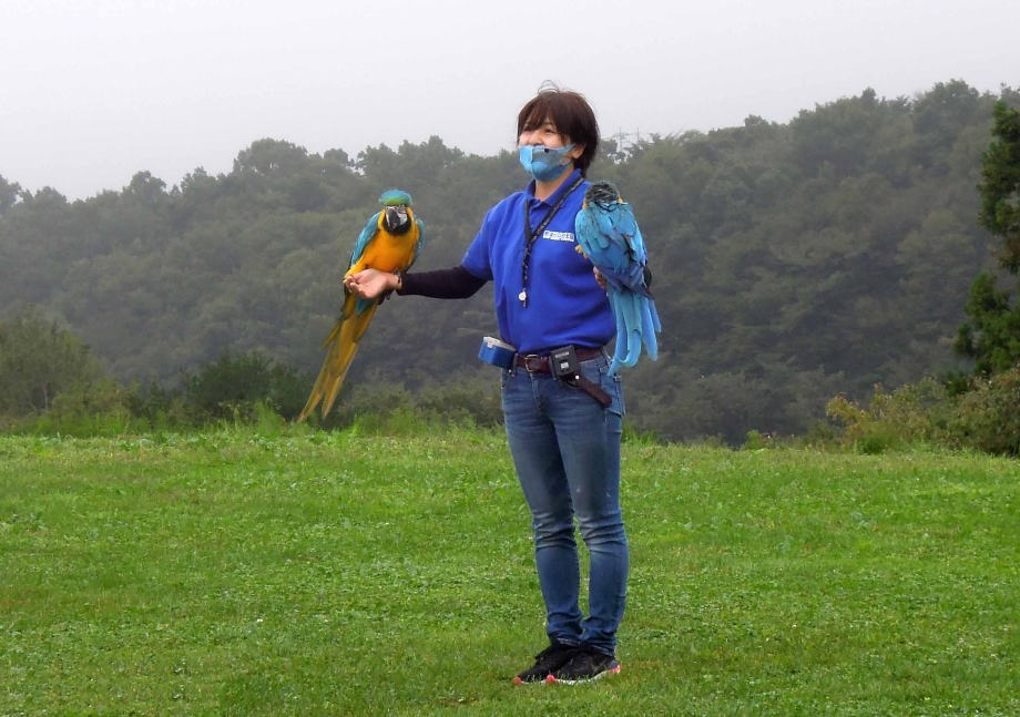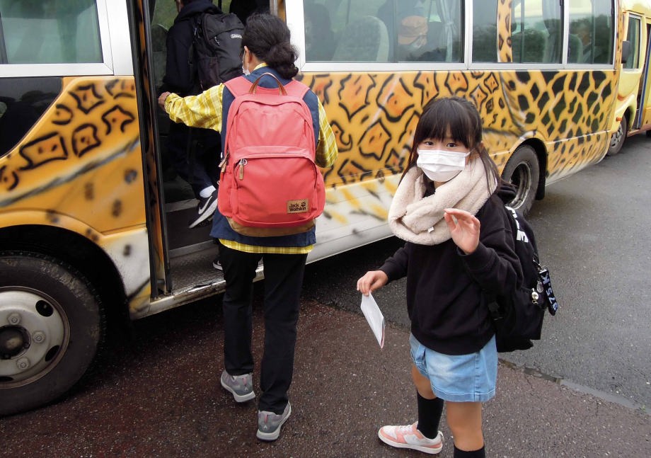 | 「ワンニャンバス」に乗ってバードショウを見に行くの。 |