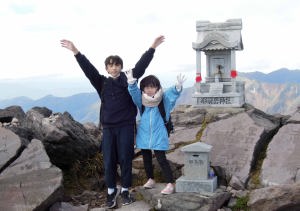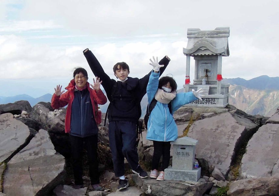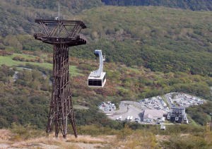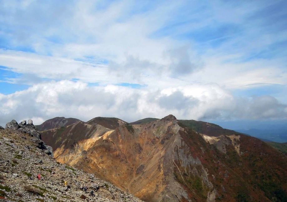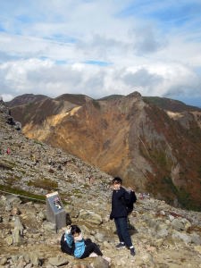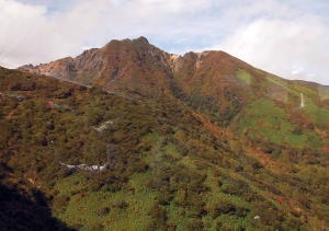 | 下りのロープウエイから見た、朝日岳だよ。むかしパパは爺ちゃん婆ちゃんと一緒に登ったんだって。 |