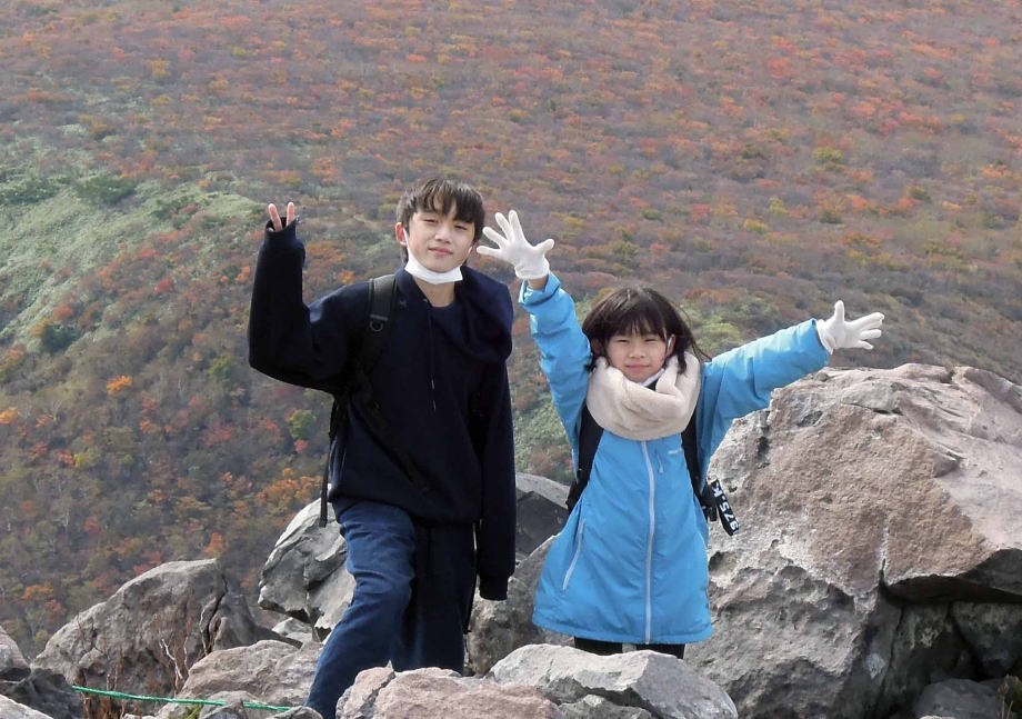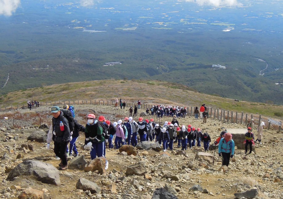 | ロープウエイ山頂駅から茶臼岳に小学生が大勢登ってたよ。 |