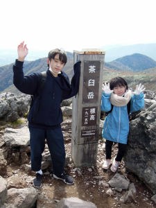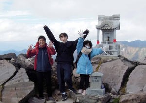 | 山頂の標識は少し下にあったよ。標高は1915mもあるんだ。 |