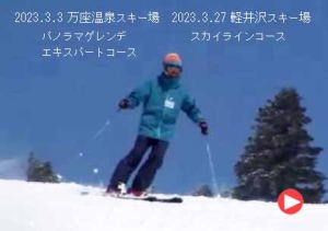 軽井沢スキー場にも行ったよ。「スカイラインコース」は前の日に雨が降って雪が大分溶けてたんだ。ビデオは全部スキー学校の先生に撮って貰ったよ。
